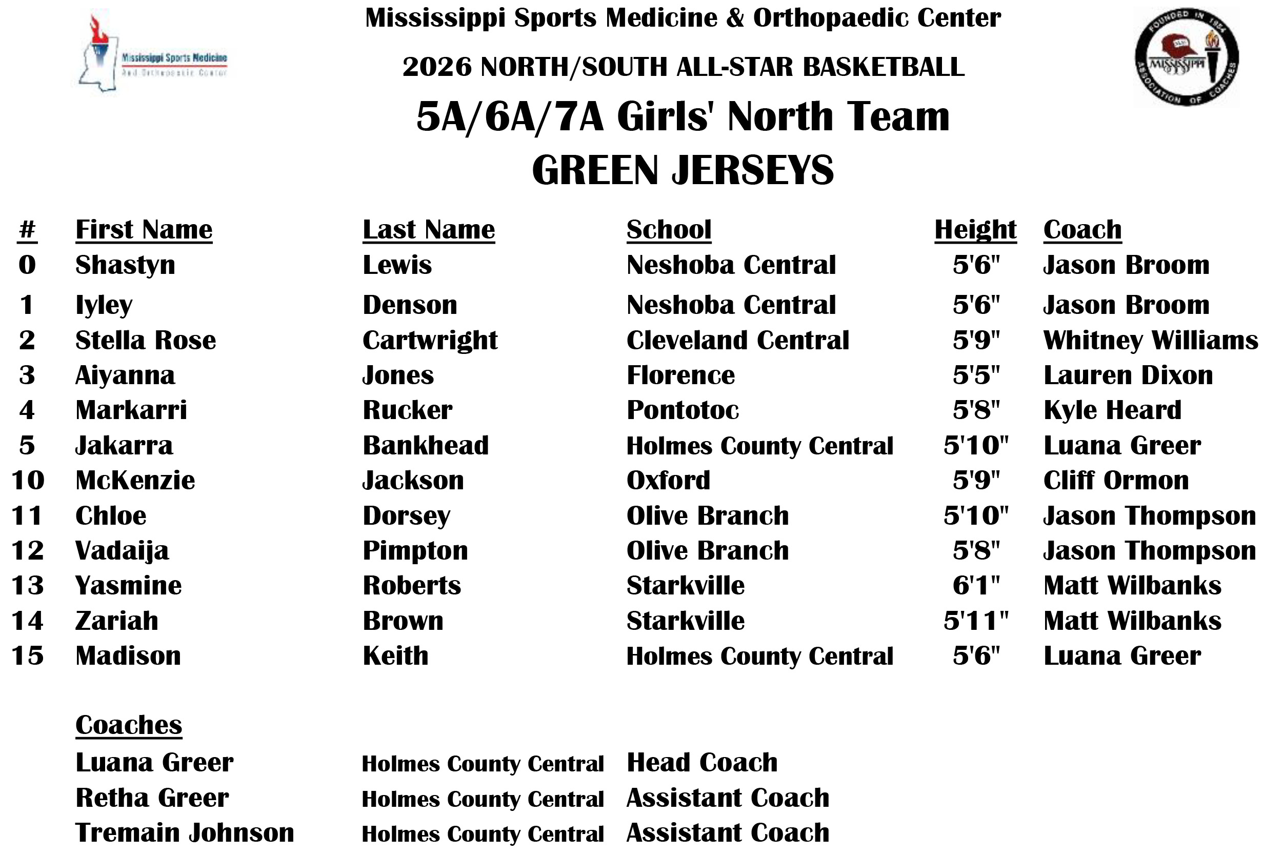 5A/6A/7A Girls' North Team