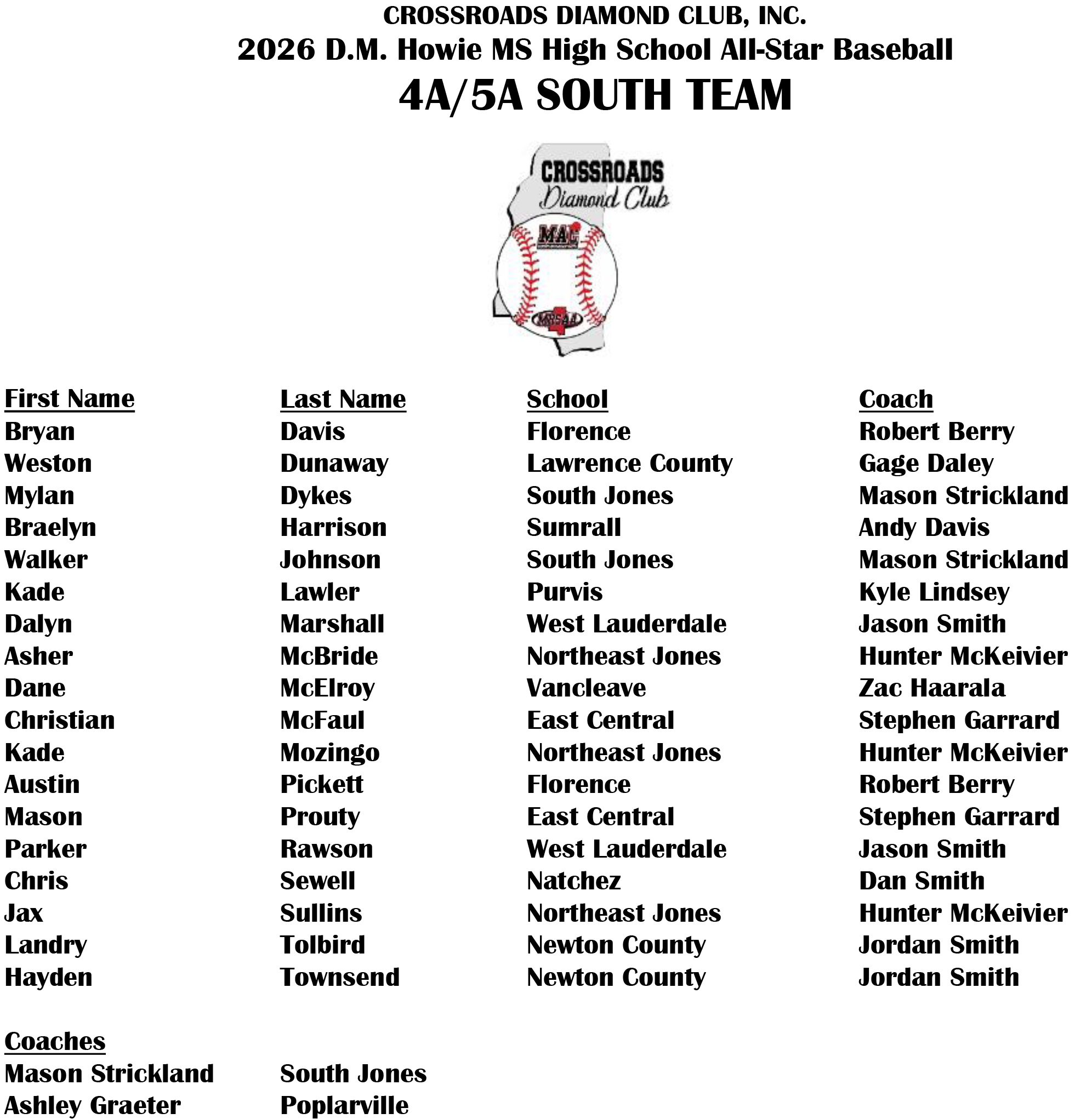 2026 Baseball All-Stars will be selected Wednesday, April 8.